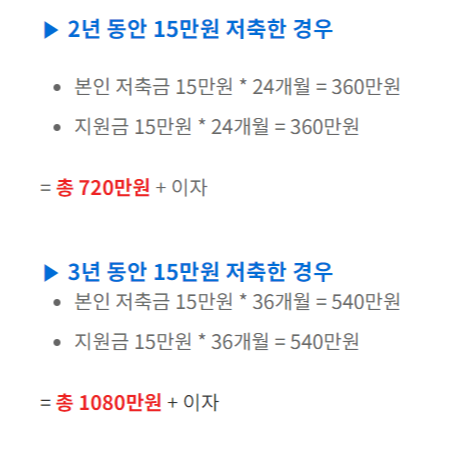 희망 두배 청년통장 지원내용