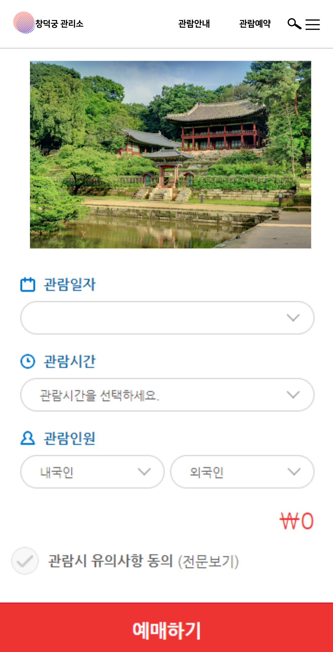- 후원 외국인 관람시간에는 내국인 예약 불가능합니다. (외국인 동반자가 있는 경우 내국인 2명까지 입장가능)